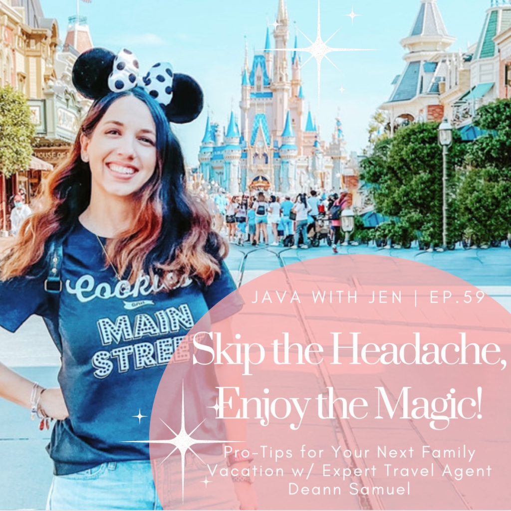 Travel Agent and Disney Expert Deann Samuel dishes the details on the Java with Jen Podcast on how to have a happier experience planning a Disney vacation for your family.